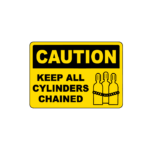 • The caution keep all cylinders chained ensures critical safety information is visible, supporting emergency response, personnel safety, and regulatory compliance.