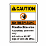 Caution No tresspassing Construction area Authorised personnel only