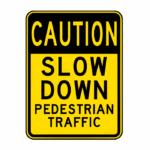 Advises drivers to slow down for safety. Common near curves or hazards.