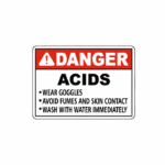 Danger Acids Wear goggles Avoid fumes and skin contact Wash with water immediately