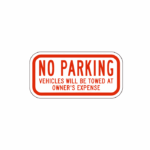 Alerts that vehicles parked in the area will be towed. Enforces strict parking rules.