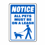 Notice All Pets Must Be on A Leash Sign