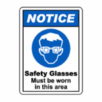 Specifies areas where safety glasses are required. Protects workers’ eyes from potential injury.