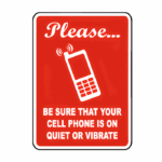 Remind individuals with this sign: Quiet or Vibrate Cell Phone Sign. Suitable for community, facility, or private enforcement areas.