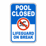 Indicates the pool is closed temporarily while the lifeguard is on break. Ensures safety during downtime.
