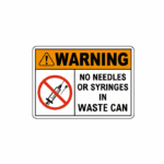 Warning No needles or syringes in waste can